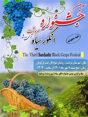جشنواره انگور سیاه این شهرستان بعد از 2 سال وقفه به دلیل شیوع بیماری کرونا، در هفتم مهرماه سالجاری برگزار خواهد شد.