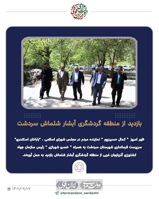 ظهر امروز نماینده مردم در مجلس شورای اسلامی ، " باباخان اسکندری" سرپرست فرمانداری شهرستان سردشت به همراه رئیس سازمان جهاد کشاورزی آذربایجان غربی از منطقه گردشگری آبشار شلماش بازدید به عمل آوردند.