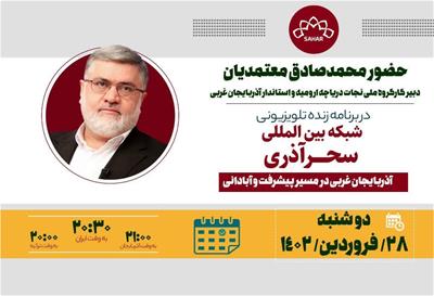 دبیر کارگروه ملى نجات دریاچه ارومیه و استاندار آذربایجان غربی امشب در شبکه بین المللى سحر آذرى حضور می یابد.