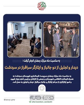 به مناسبت ماه مبارک رمضان سرپرست فرمانداری شهرستان سردشت به همراه فرمانده انتظامی شهرستان و جمعی از کارکنان و رئیس اداره بنیاد شهید و امور ایثارگران از دو نفر ایثارگر و جانباز سرافراز دیدار و تجلیل به عمل آمد.