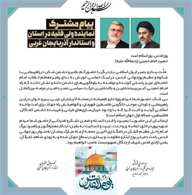 نماینده ولی فقیه در استان و استاندار آذربایجان غربی جهت قدردانی از حضور حماسی و با بصیرت امت غیور و انقلابی استان در راهپیمایی روز جهانی قدس پیام مشترکی صادر کردند.