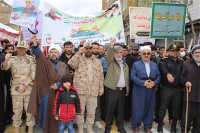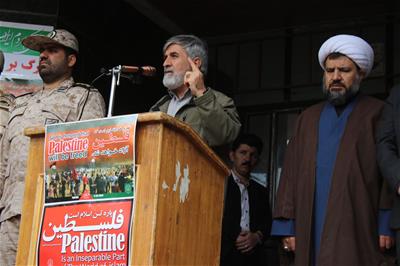 " باباخان اسکنری " در راهپیمایی روز جهانی قدس همراه با مردم، خواهان تقویت وحدت مسلمانان و حمایت از مردم مظلوم فلسطین شد.