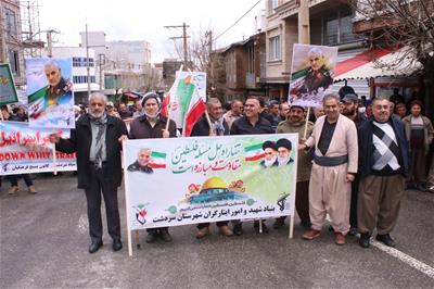 مراسم راهپیمایی روز جهانی قدس با حضور باشکوه قشرهای مختلف مردم در سردشت برگزار شد.
