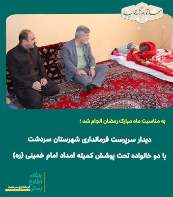 صبح امروز " باباخان اسکندری" سرپرست فرمانداری سردشت به همراه رئیس کمیته امداد امام خمینی (ره) شهرستان و جمعی از کارکنان این اداره با دو خانواده تحت پوشش کمیته امداد دارای بیمار زمینگیر دیدار کرد.