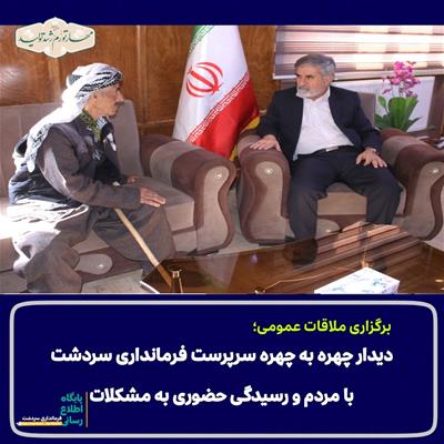 سرپرست فرماندار سردشت صبح امروز در برنامه ملاقات عمومی به صورت حضوری، مسائل و مشکلات مطرح شده شهروندان را مورد بررسی و پیگیری قرار داد.