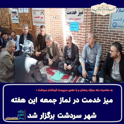 به مناسبت ماه مبارک رمضان و در راستای استمرار ارتباط نزدیک مسئولان با مردم، رسیدگی نخستین میز خدمت در سال نو قبل از اقامه نماز در مسجد جامع سردشت برپا گردید.