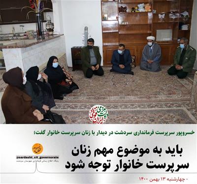 امروز چهارشنبه 13 بهمن 1400 " لقمان خسروپور " سرپرست فرمانداری شهرستان سردشت به همراه سایر مسئولان با تعدادی از زن سرپرست خانوار دیدار و گفتگو کرد.