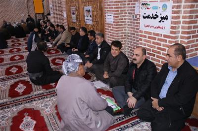 میز خدمت جهادی دستگاههای اجرایی به منظور رسیدگی به امور مردم این بار در مسجد جامع سردشت برپا گردید.