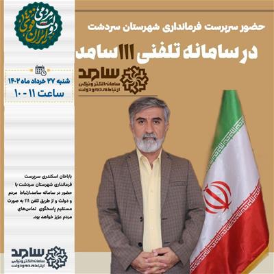 سرپرست فرمانداری شهرستان سردشت در سامانه سامد برای پاسخگویی به سؤالات مردم حضور می یابد.