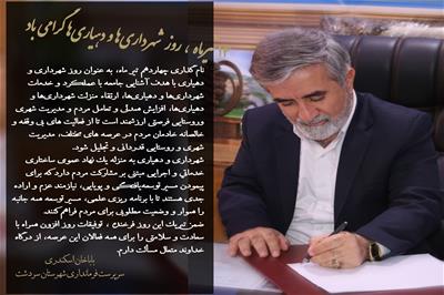 " باباخان اسکندری " سرپرست فرمانداری شهرستان سردشت طی پیامی چهاردهم تیرماه روز شهرداری و دهیاریها را تبریک گفت.