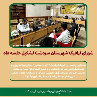 نخستین جلسه این شورا با ریاست " آزاد محمدپور " معاون برنامه ریزی و هماهنگی امور عمرانی فرماندار و با حضور اعضای این شورا به منظور بررسی مصوبات جلسات قبل و بررسی مسائل و مشکلات حوزه ترافیکی شهرستان در سالن اجتماعات فرمانداری برگزار شد.